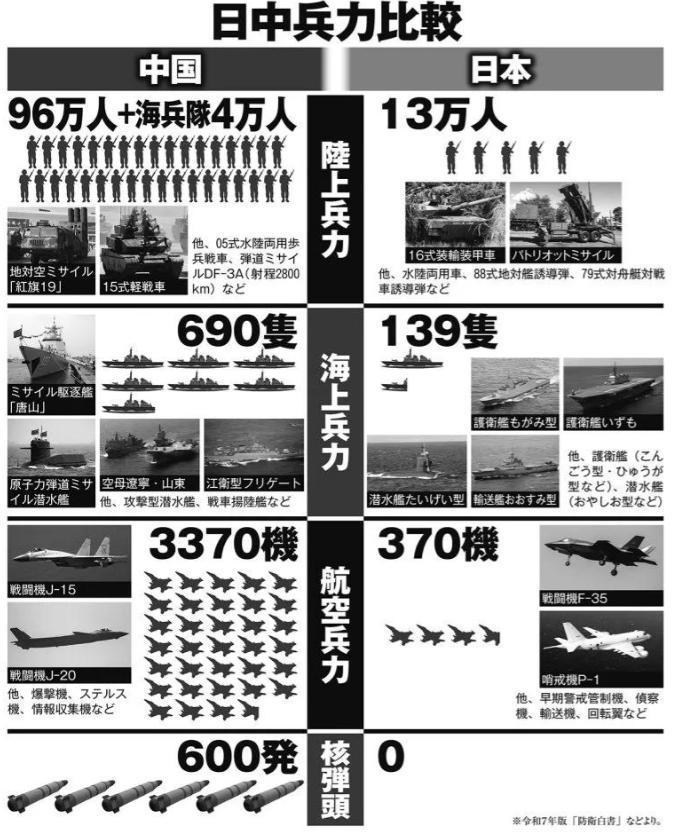 日本提供的军事对比
